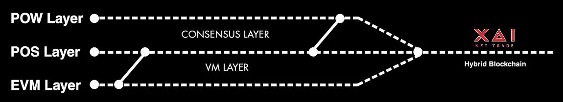 XAI NFT is the Ultimate Hybrid Blockchain, combining the best of Proof-of-Work (POW), Proof-of-Stake (POS), and Ethereum Virtual Machine (EVM) technologies.